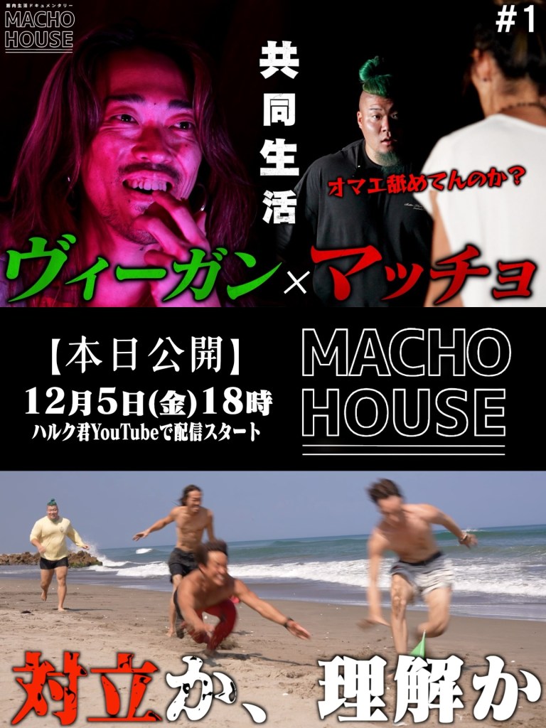『マッチョハウス』は、「マッチョ」と「ヴィーガン」という、一見まったく異なる価値観を持つ人たちが、ひとつ屋根の下で共同生活を送るドキュメンタリー企画です。