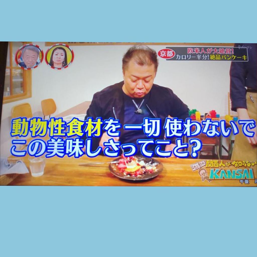 Looking back on it now, this was one of Vegan Oji’s most memorable media appearances. During the recording, Kosugi-san even had the chance to try the vegan pancakes from Mumokuteki Cafe in Kyoto, which made it a particularly meaningful opportunity to introduce the appeal of plant-based food in a natural and relatable way.
